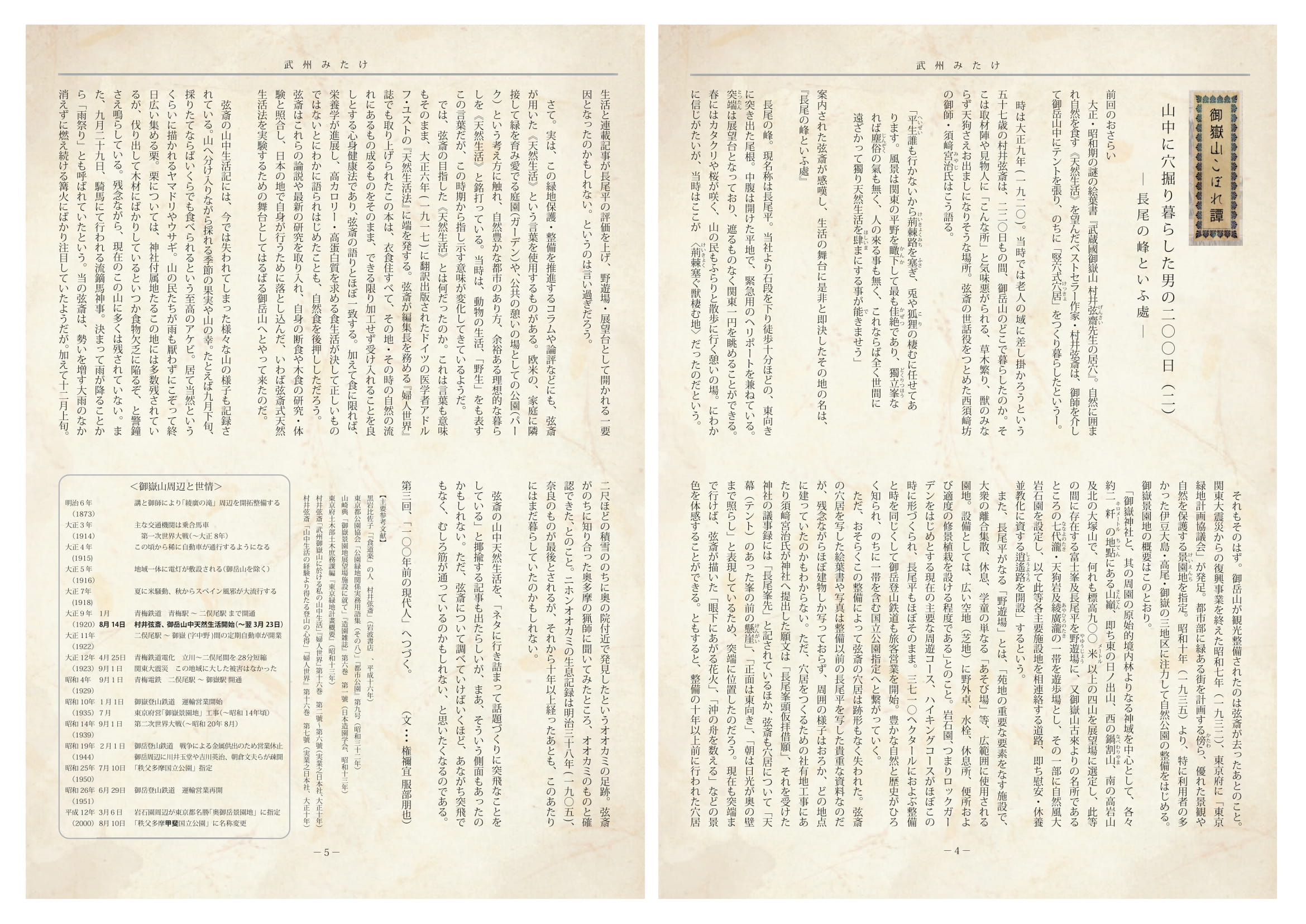 ・P.4-5 御嶽山こぼれ譚「山中に穴掘り暮らした男の二〇〇日 (二)」(権禰宜 服部朋也)